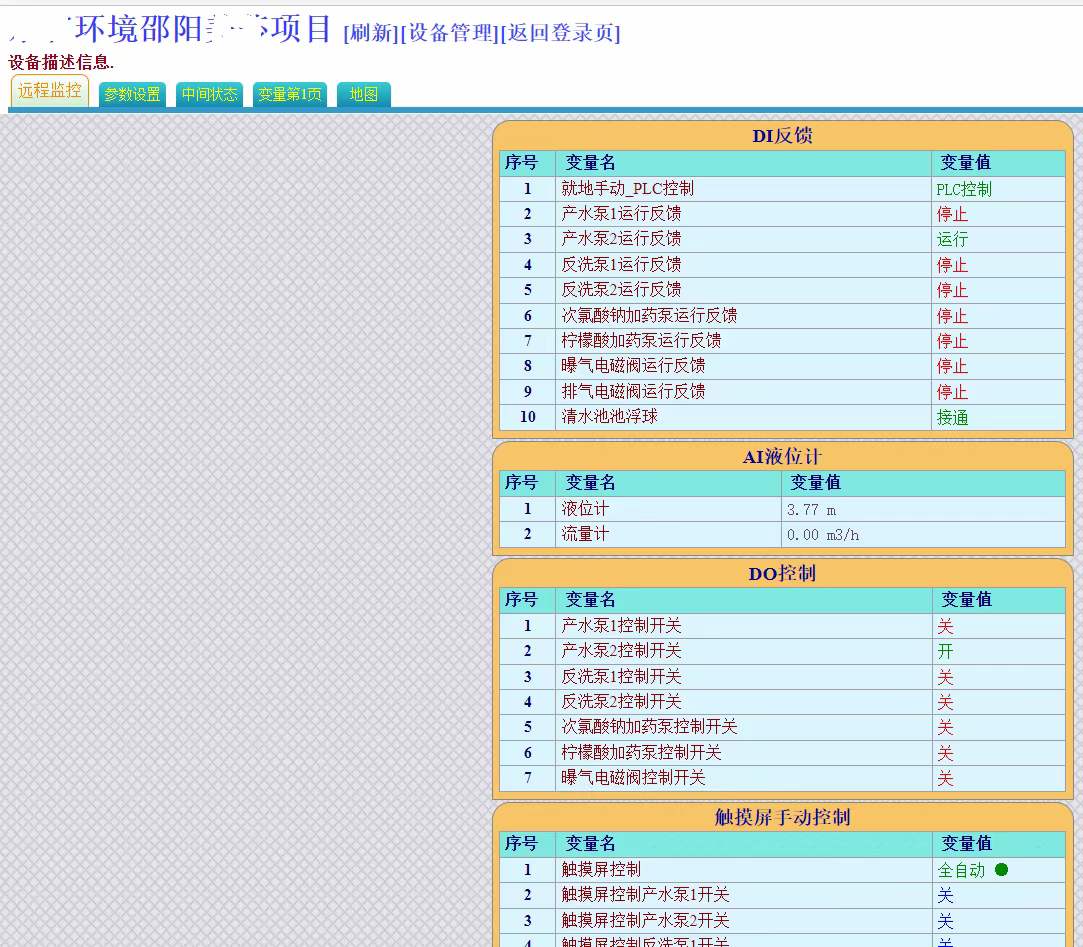 MBR污水處理系統,采用巨控GRM231Q-8D4I作為控制器,無需PLC,遠程和控制一體化,系統已經穩定運行三年,無任何故障。