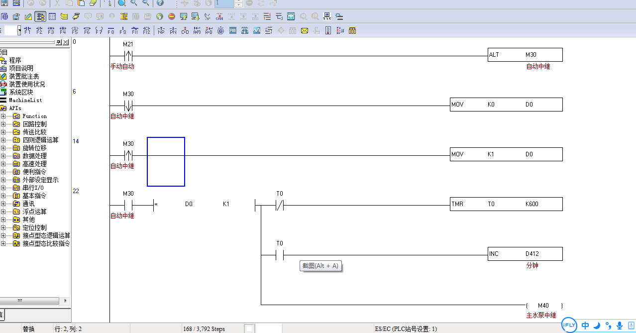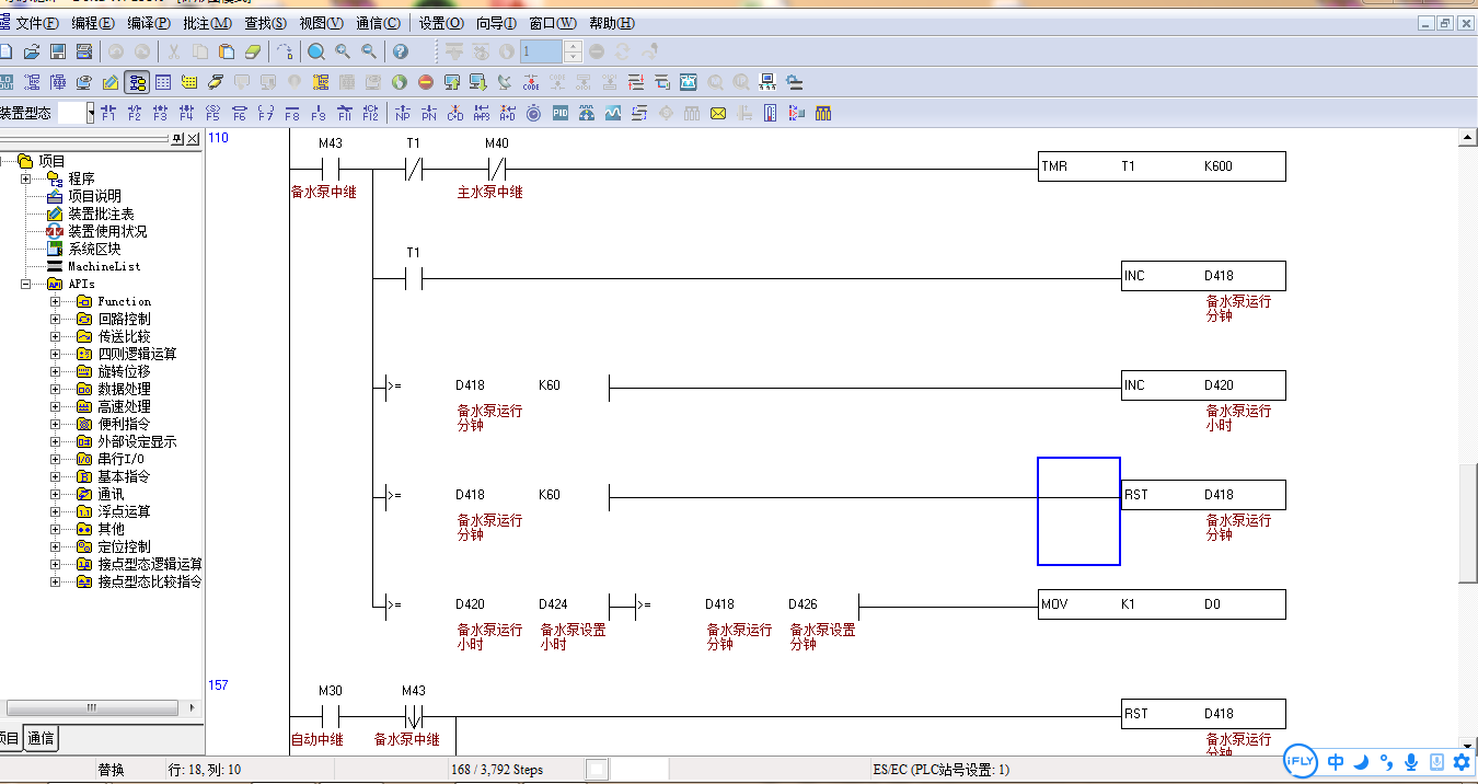 我做的污水站程序,其中很多水泵自動輪換的,要在觸摸屏上設置主泵運行多少個小時,多少分鐘,備泵運行多少個小時,多少分鐘,時間到了就自動切換。]   我用的臺達plc編的程序。我編壞了覺得程序有點長,就這還沒有加自動判斷哪個運行時間長短什么的。大家都是怎么編的?