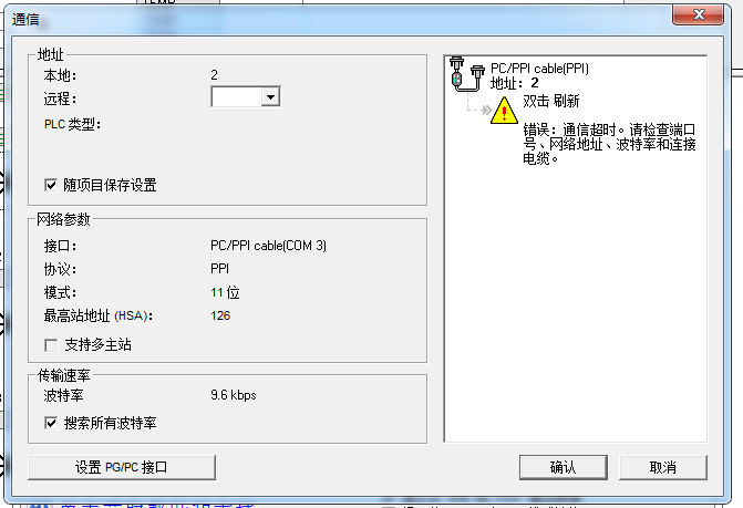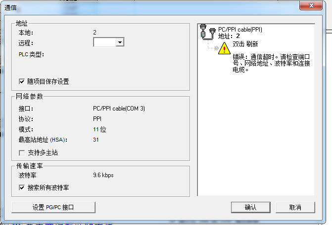 通訊超時多半是線連接錯誤,或者設置有問題。