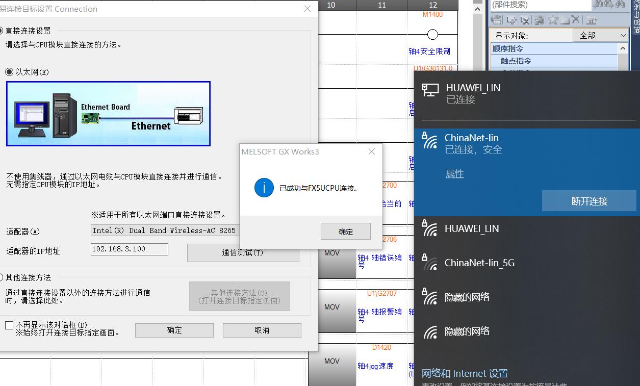 各位同行有沒有碰到過,無線路由器連接三菱以太網一會就掉線,根本沒法在線監控,上下載,我用的無線路由器是千兆的,5U,Q系列都一樣,Q系列用有線都會掉線,只能用USB,但是做tcp套接字又沒問題,請問是不是我設置問題呢