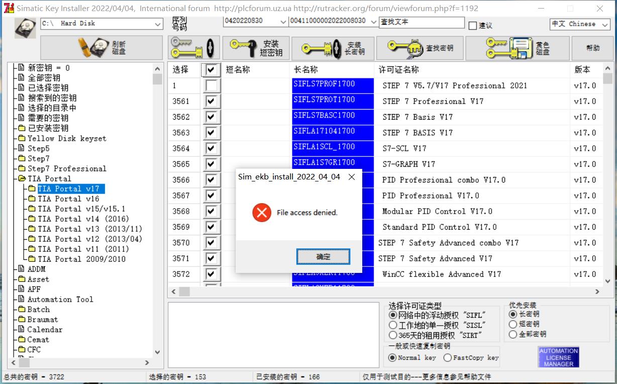 1.PLCSIMv17安裝了的,但是授權不知道在哪里點。