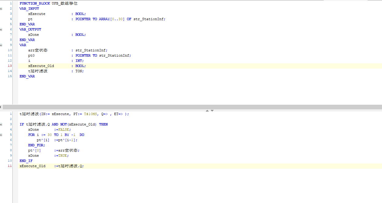 附件為施耐德FOR循環(huán)指針數(shù)組移位功能塊,用三菱ST語言應(yīng)該怎么寫,請指教。