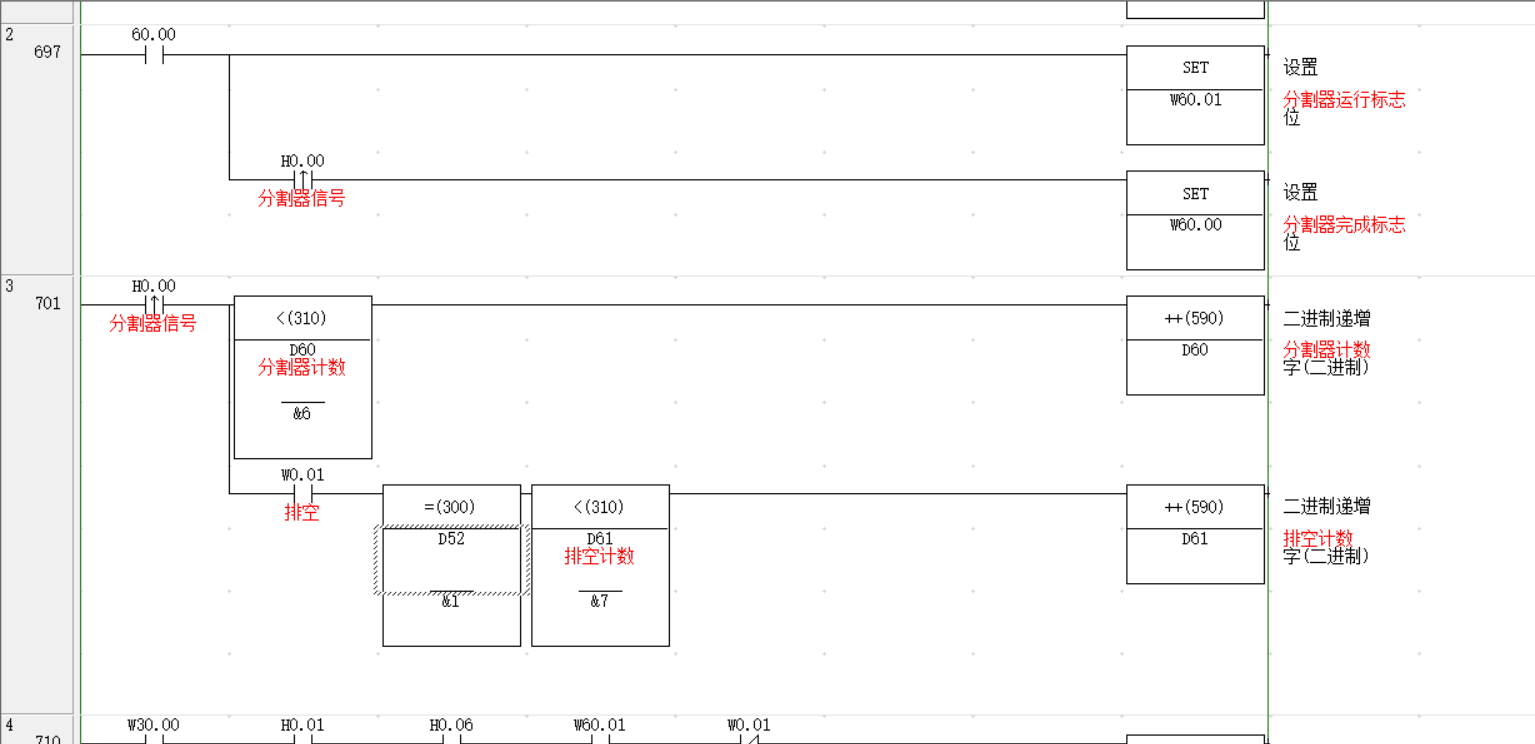 轉盤分割器,一般采用光電開關,怎么會采集不到,還有你那個啟動按鈕,要加上升沿吧,如果一直按著,那你程序不是錯亂了