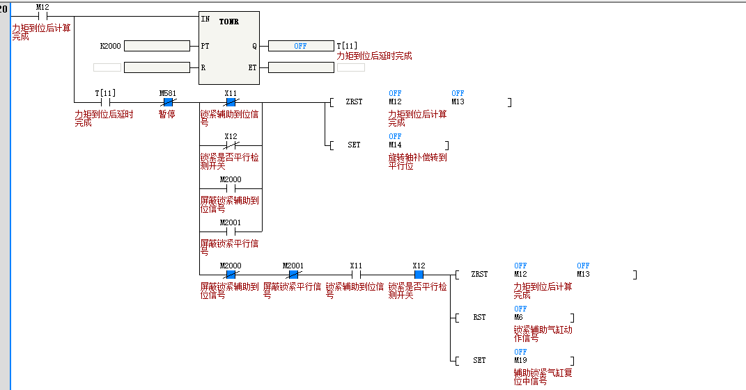 引用引用第1樓longry于2023-09-09 16:20發(fā)表的 :沒看出來有問題啊,X11有信號SET M19, X11沒信號 ZRST M12 M13,SET M14。 然后你程序其他地方把M14 和M19復位了吧?