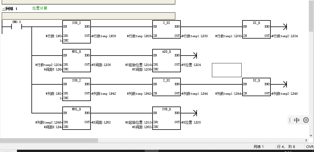 //*************************陣列取料算法*************************************//RTRIG_XY[0](Clk:=S12.Condition[70]);//觸發(fā)計數(shù)IF RTRIG_XY[0].Q  THEN nstate_XY[0]:=nstate_XY[0]+1;//X計數(shù)加1END_IF;IF nstate_XY[0]>=INT#5 THEN//陣列行數(shù)遞增 nstate_XY[0]:=INT#0; nstate_XY[1]:=nstate_XY[1]+1;END_IF;IF nstate_XY[1]>=INT#2 THEN//料盤取完標(biāo)志 nstate_XY[0]:=INT#0; nstate_XY[1]:=INT#0;    S12.Condition[72]:=TRUE;END_IF;