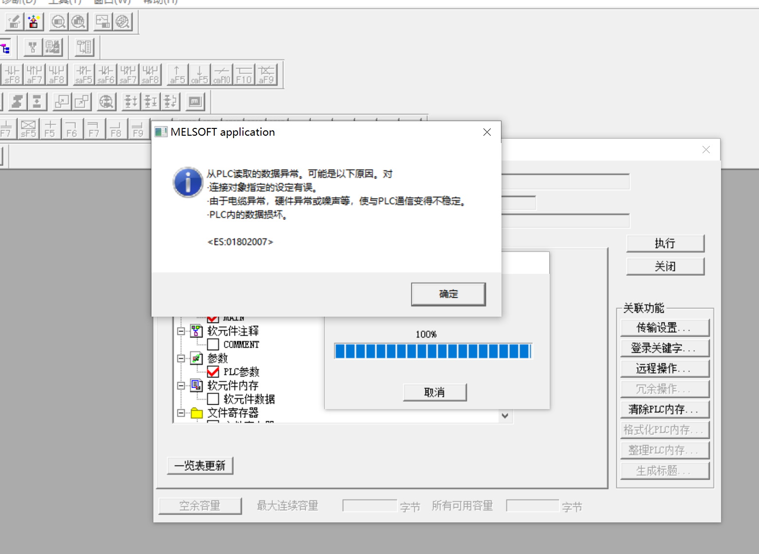 PROM-E燈閃爍,PLC沒有輸出,GX develope 讀取程序中報錯。