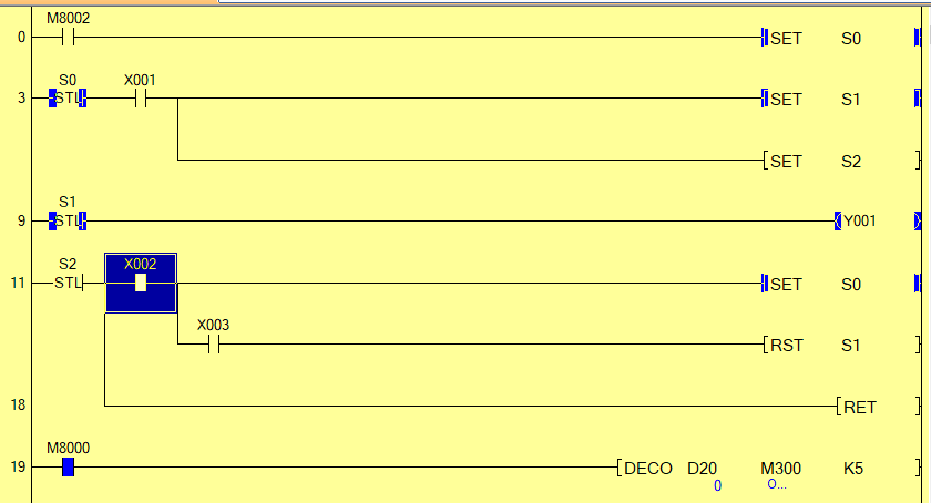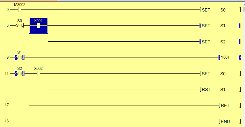 stl指令可以說一門plc語言,因為基于stl指令有專門的圖形化編程界面,以方便進行步進編程。且生成的程序有極高的執行效率。。。只有需要執行的步才會被訪問,其他步完全不占用CPU時間(類似JUMP或子程序調用),不似其他方式實現的步進(比如移位),執行時所有步都需要判斷當前是否要執行(三菱的判斷但不執行占用的CPU時間并不小多少,手冊附錄有詳細時間占用表)。