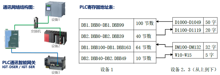 西門子PLC與三菱Q系列PLC跟智能網關之間是通過交換機以太網連接,網關參數軟件的電腦也是連接在這個交換機上;歐姆龍PLC跟網關之間是串口連接。