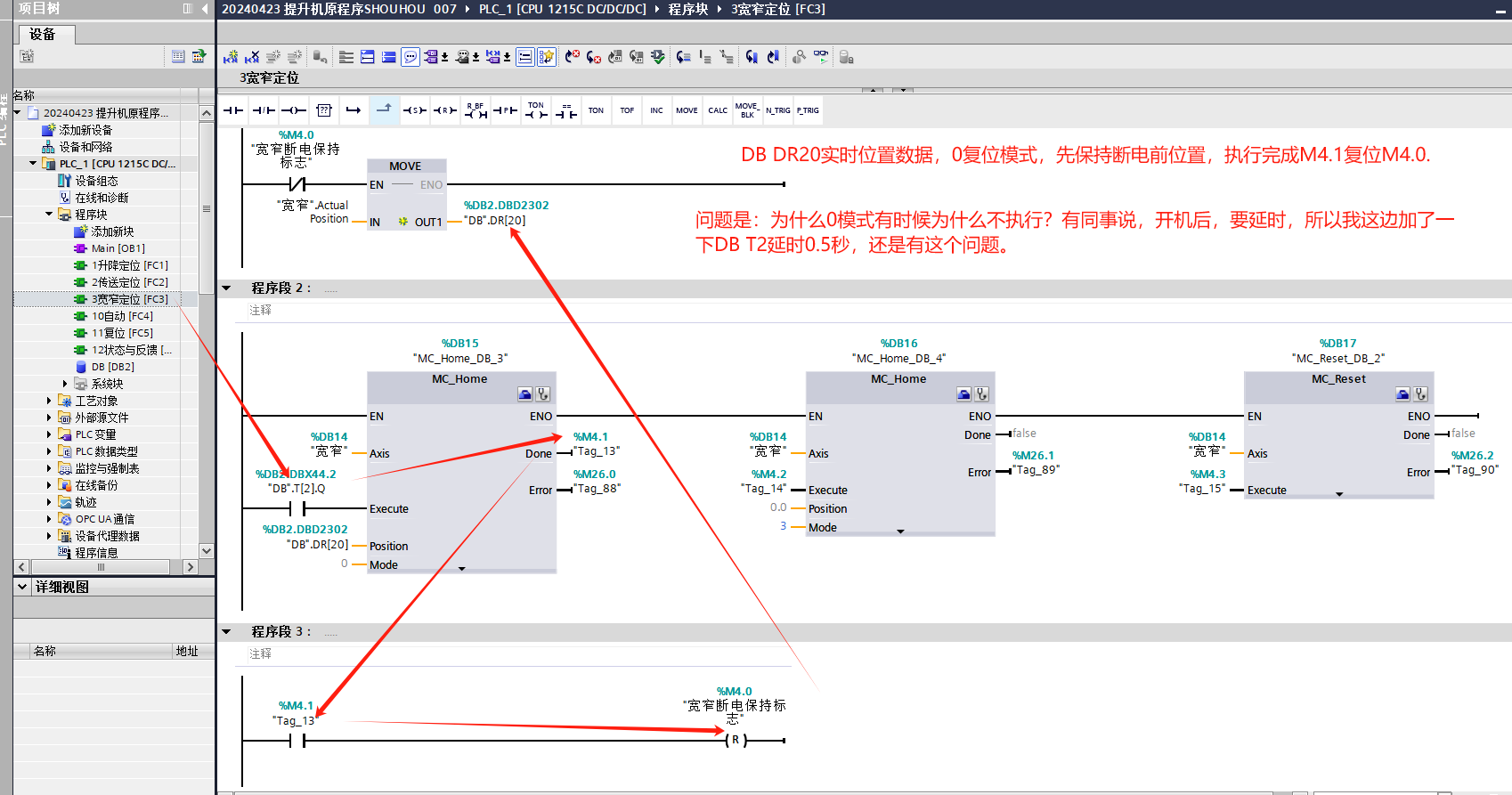 現在的問題是,有時候DBT2觸點一直接通,   0模式復位完成標志M4.1沒有輸出,程序卡在0號復位模式不執行,怎么回事呢?