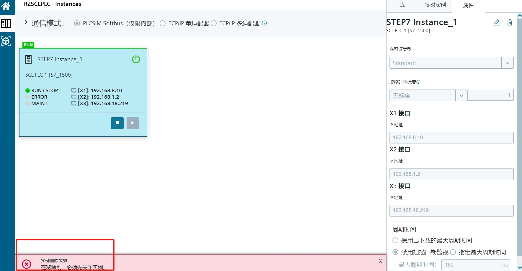 PLCSIM的實(shí)例刪不掉,實(shí)例屬性也改不了?