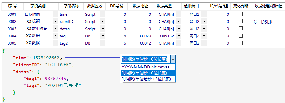 圖上'字段類別'欄目中所對(duì)應(yīng)的'XX',在HTTP協(xié)議里對(duì)應(yīng)'上報(bào)'和'下載',在MQTT協(xié)議里對(duì)應(yīng)'發(fā)布'和'訂閱'。另外智能網(wǎng)關(guān)也支持邊緣計(jì)算腳本編程(手冊(cè)下載),通過腳本程序可以實(shí)現(xiàn)任意格式的JSON、XML,以及逗號(hào)分隔符等各種非標(biāo)準(zhǔn)格式的文件機(jī)構(gòu),以及數(shù)據(jù)的運(yùn)算處理。