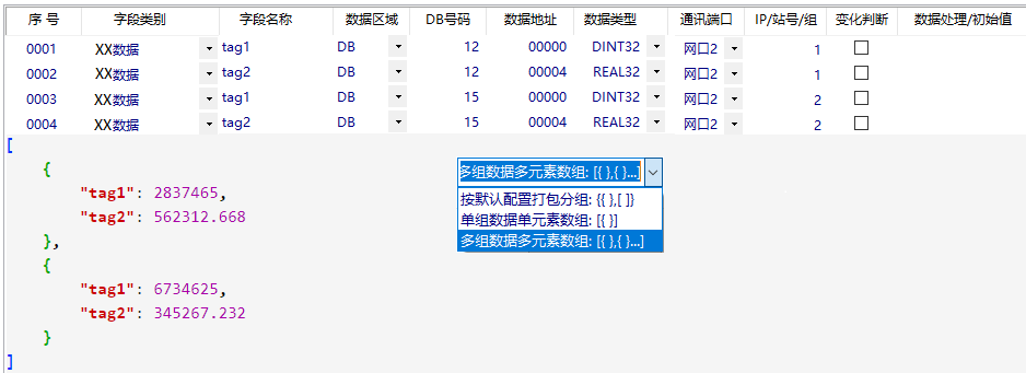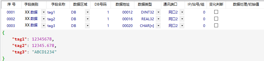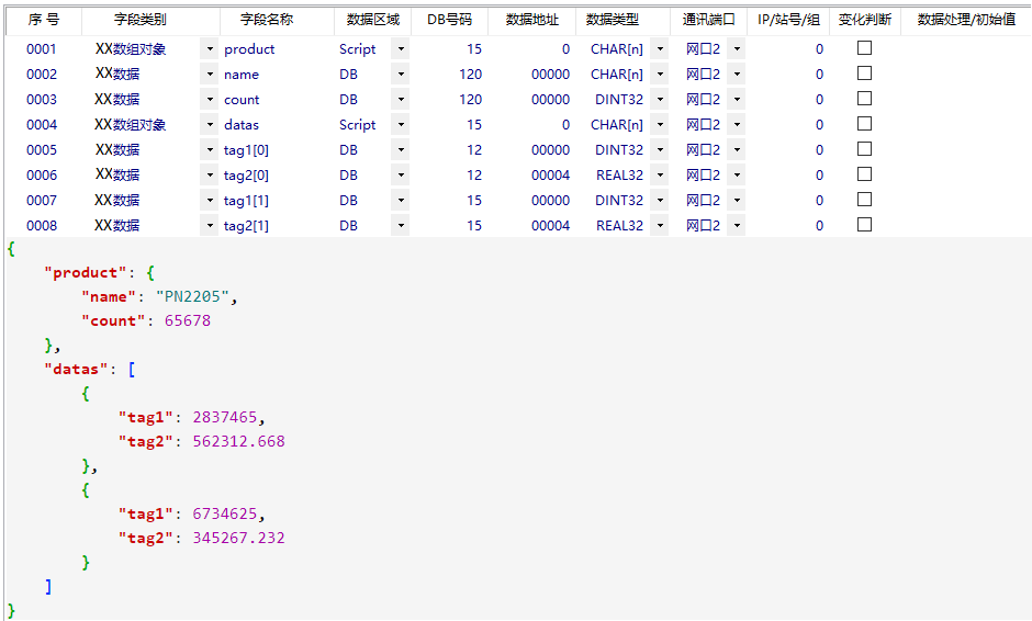 以下是數(shù)據(jù)配置表自動(dòng)生成的JSON文件的對(duì)應(yīng)。JSON文件內(nèi)的數(shù)據(jù)可以自由增減,字符可自由修改,舉例只是為了描述各種JSON文件的結(jié)構(gòu)實(shí)現(xiàn)。MQTT協(xié)議的發(fā)布/訂閱也是同樣的對(duì)應(yīng)方式。具體如下: