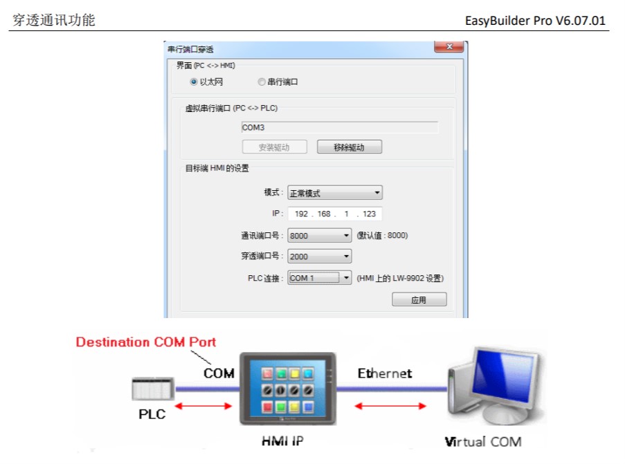 威倫通的這個“串行端口穿透的 串行端口模式”,實在沒想通它有什么作用。全是用的 串口通信了(電腦與HMI為串口通信,HMI與PLC也是串口通信),為啥還要ip地址?還要電腦網線和觸摸屏連接?也就是說HMI要有以太網,但是有以太網的話我為什么不直接用以太網連接電腦的方式穿透?這個存在有什么意義啊?
