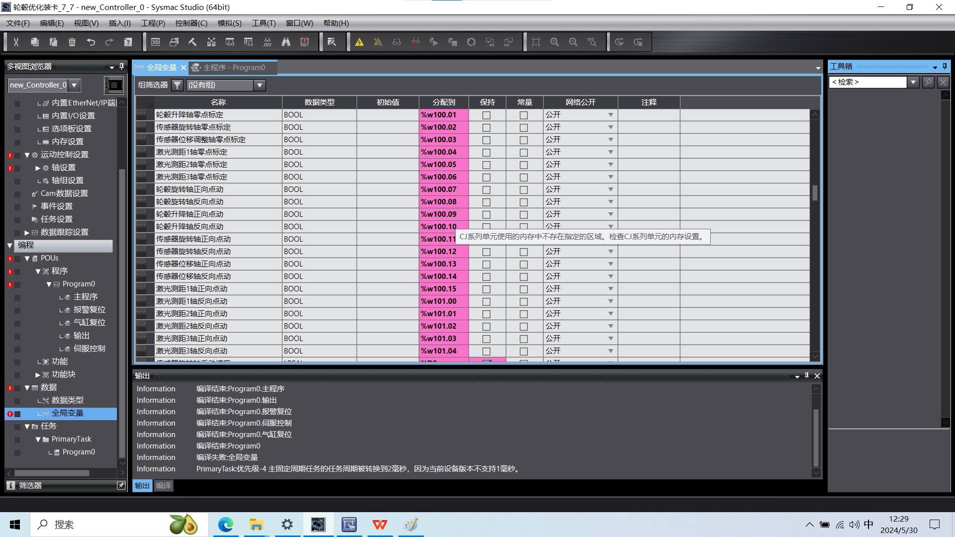 更改設(shè)備NX1P21040DT后程序,分配內(nèi)存全部紫紅色