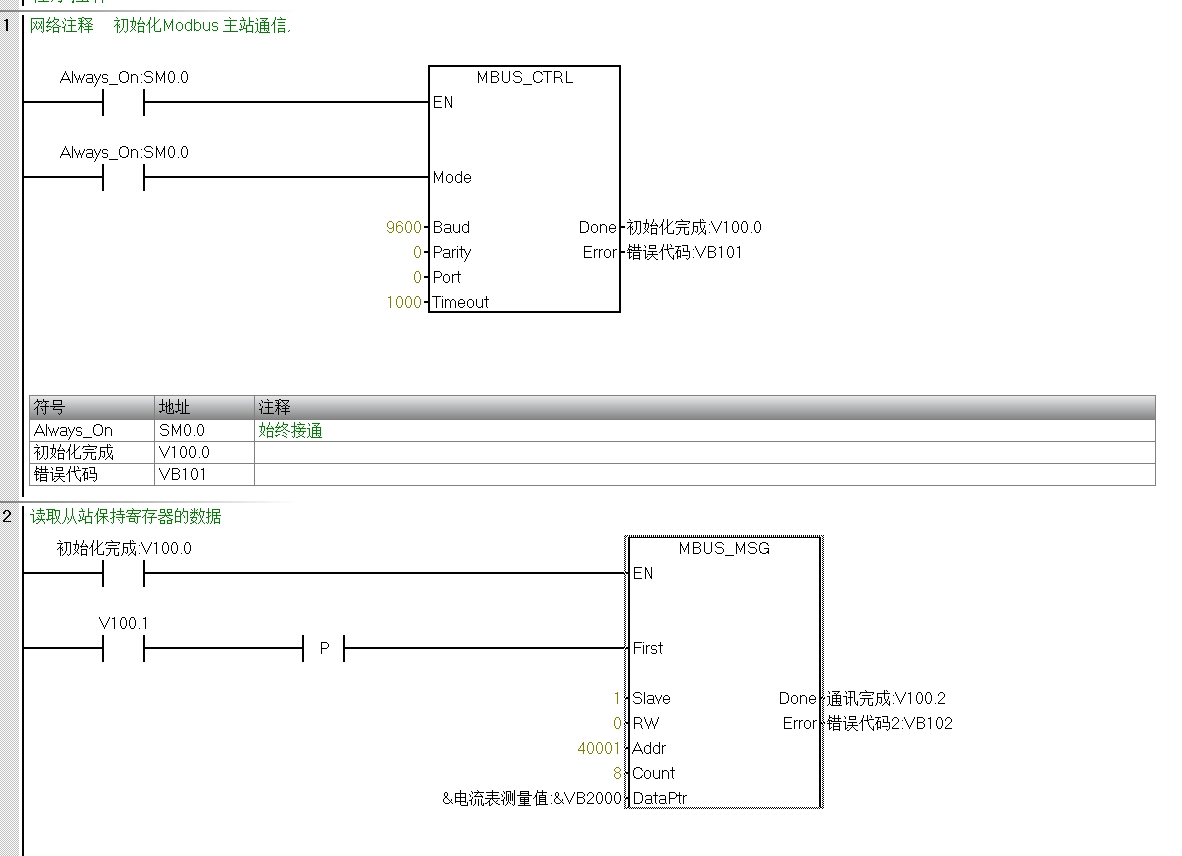 200SMART跟電流表做RS485通訊。讀取電流表的值。不知道MSG的指令中Addr地址這樣寫對不對。