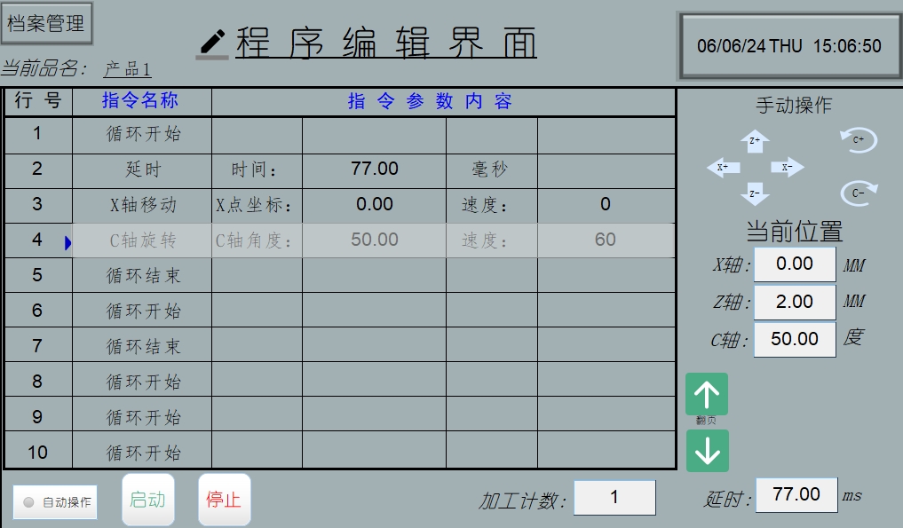 這兩天摸索著用威綸觸摸屏寫了個配合三菱PLC的可編程控制界面,主要是構想著可以實現像運動控制器系統那樣實現順序控制。 程序行數最大100行,程序可存10個檔案,指令暫時只寫了六七個。 親測基本上可以實現邏輯的運行,當然,本人水平有限,寫的不是很好,本著學習的心態上傳程序,拋磚引玉,希望大家交流指正,謝謝! |
