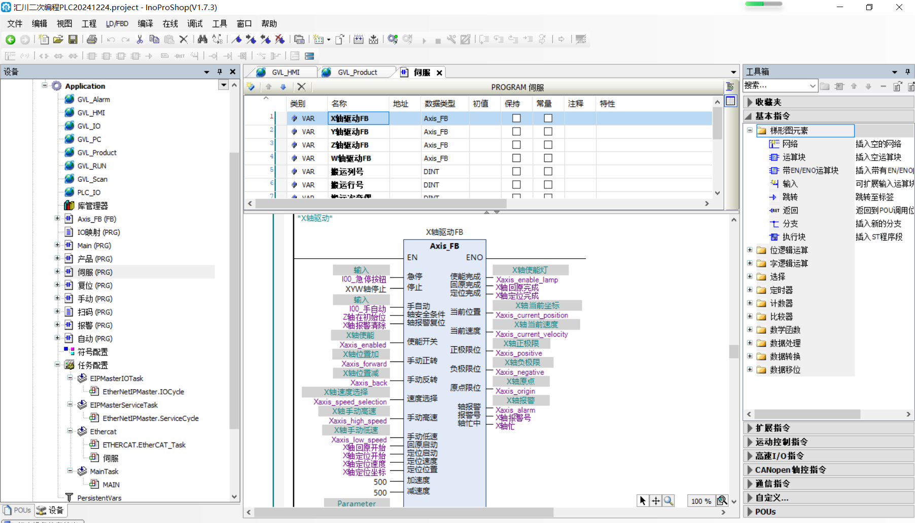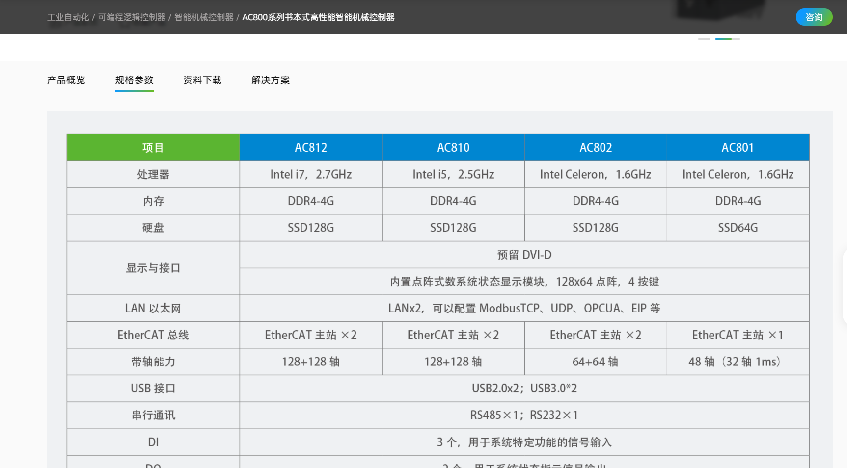 最近比較閑,想用匯川AC系列PLC寫多工位二次編程,問供應商AC810沒庫存只剩AC802,買了一套匯川AC802帶UPS電源和一些伺服,準備在PLC里寫100工位二次編程,后面再移值到AC810PLC里控制200多軸,每個工位3個插補軸(XYZ)和一些氣缸變頻器(也可以加幾個單軸),每個工位占用5個程序頻道,每個程序頻道200步。工位使用可以在觸摸屏上勾選,想用50個工位就勾選50個工位。指令庫里寫 輸入指令,輸出指令,氣缸指令,變頻器指令,延時指令,回原指令,跳轉指令,頻道調用指令,重復指令,矩陣指令,單軸相對運行指令,單軸絕對運行指令,平面直線插補指令(XY),平面圓插補指令(XY),空間直線插補指令(XYZ),空間圓插補指令(XYZ)(螺旋指令和CNC指令看了手冊好像有點問題,后面再測試分析,先實現功能)。匯川AC802像一臺電腦,內存4G,硬盤128G,這樣的配置內存很大很適合寫二次編程,寫完100工位的數據存儲數據庫,還有很多內存,寫起來很舒服。現在在寫伺服底層和指令庫,估計還要寫一段時間,每天寫一點不能把自己忙的太累了,按照基恩士的多工位二次編程方式寫匯川程序,Codesys上手就會用,和西門子基恩士編程類似。
