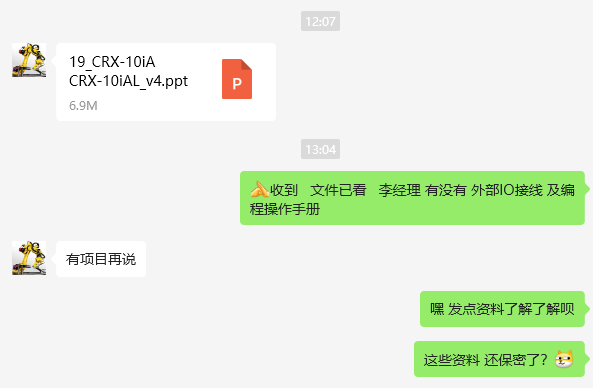 引用引用樓主聽雪樓于2025-02-28 10:17發(fā)表的 求發(fā)那科CRX協(xié)作機(jī)器人的說明書 :具體型號為CRX-10iA-L,我想看一下主機(jī)外接IO信號接哪幾個端子,如果有還有編程手冊就最好了我網(wǎng)上搜了半天沒找到,要么就是老掉牙的版本,沒有找到新的