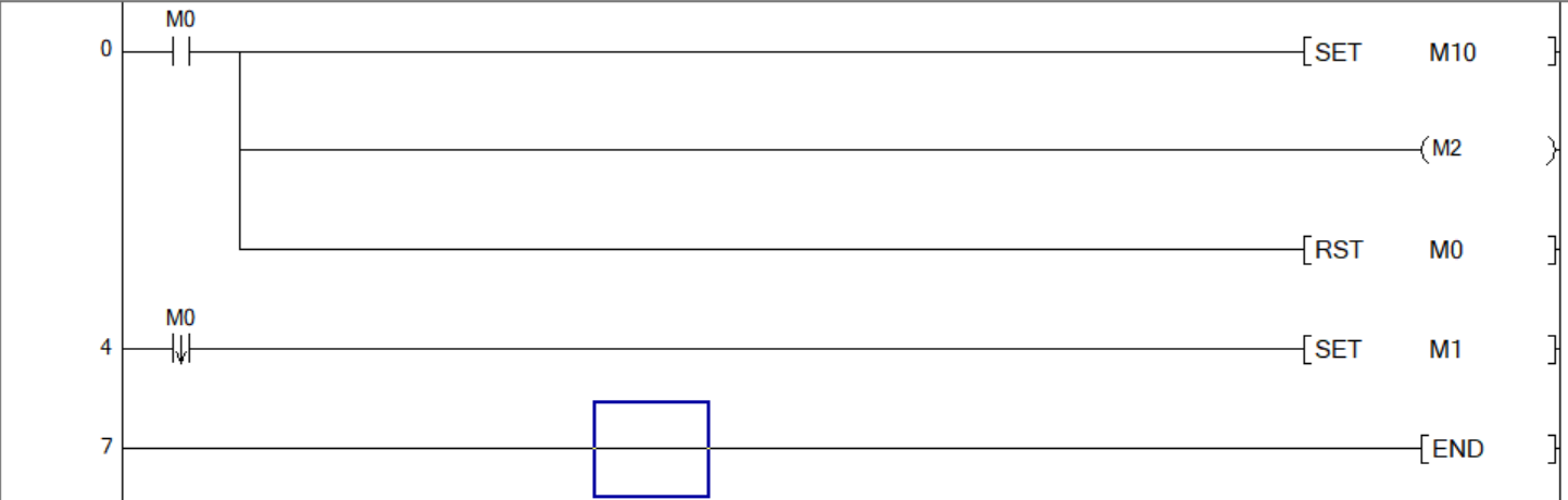 是的 放第一行就可以  但是M0有一個接通到斷開的過程為什么 放在最后一行的下降沿脈沖就不行