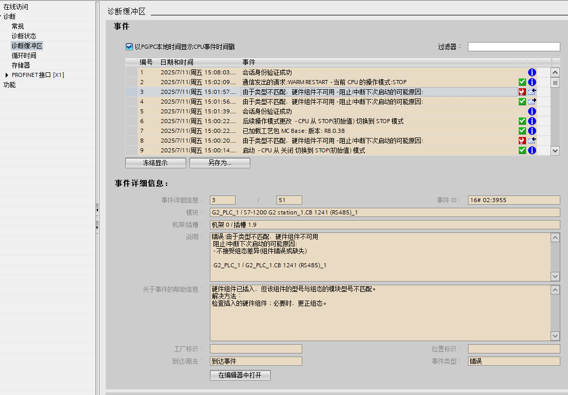 提示硬件部匹配,這樣什么問題,再博途根據組態來選的硬件,還不匹配?