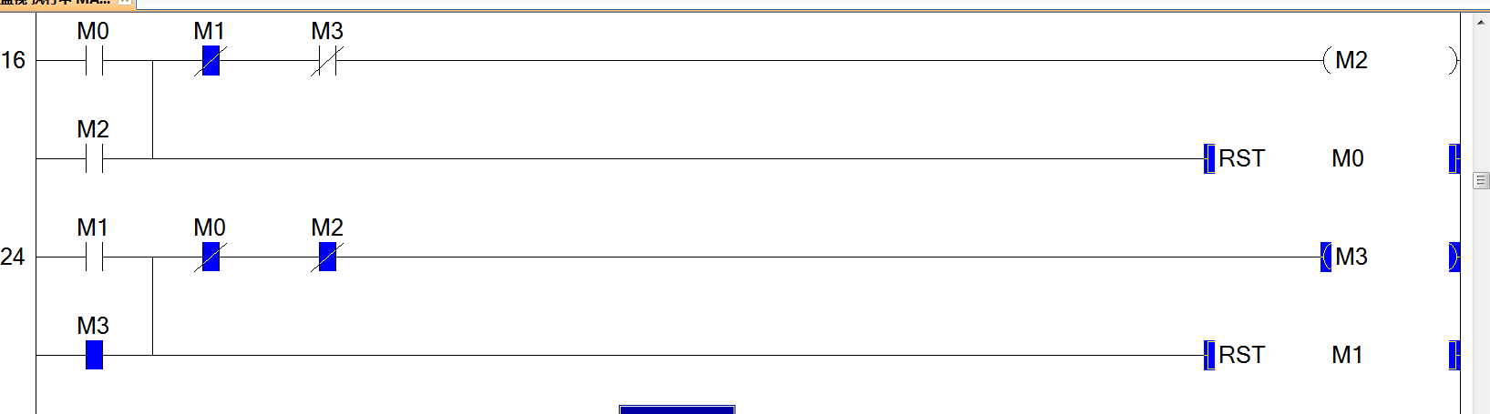 這個正反轉直接切換程序,為何不能直接切換,啟動M0時按M1可以正常調轉,但再按M0時就不能停止M3