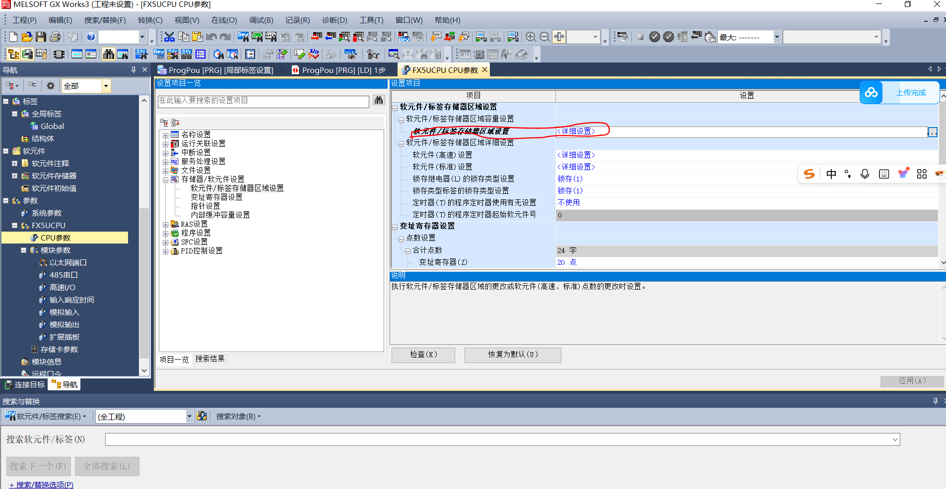 解決方法:工具-自動分配軟元件設置,分配更多的軟元件給自動分配區(注意自動分配的區間編程時不要人工調用或使用,也不要與斷電保持區間之類的重復);驕p少FB所使用的標簽。