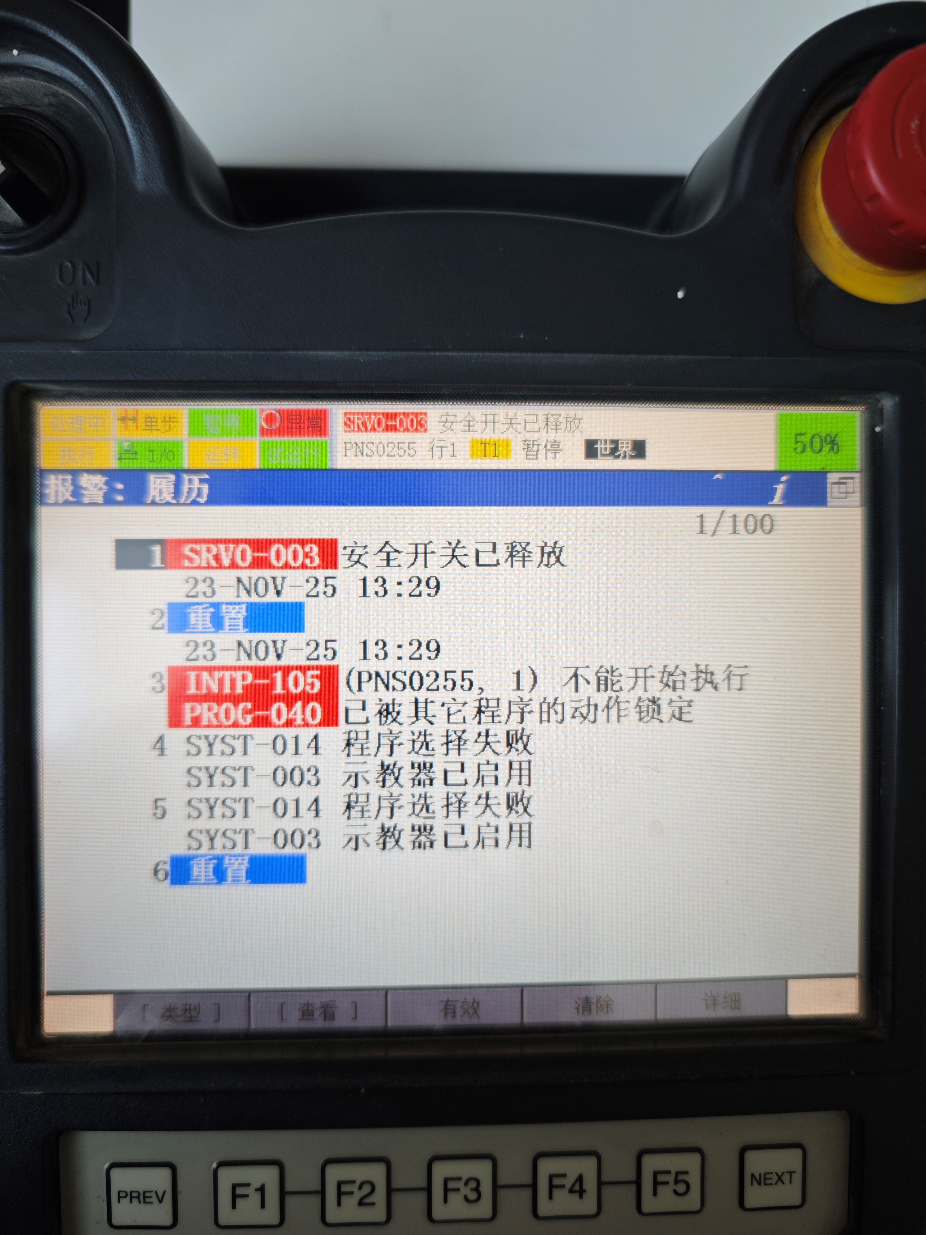 發那科機器人報警PROG-040,已被其它程序的動作鎖定,每次都要手動中止程序,有沒有辦法去掉這一步?