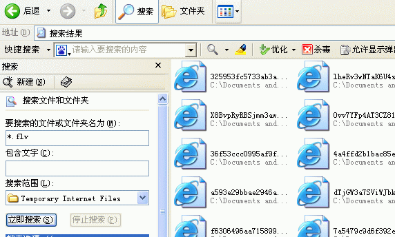 此圖是在上圖里選擇搜索“*.flv”,當(dāng)搜索完成后,右鍵“打開(kāi)所在的文件夾”