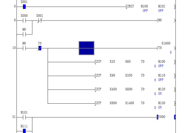 的確,程序里只寫了ZRST m100 m102 ,其余均未寫。只是想嘗試看能復(fù)位否,結(jié)果不行。