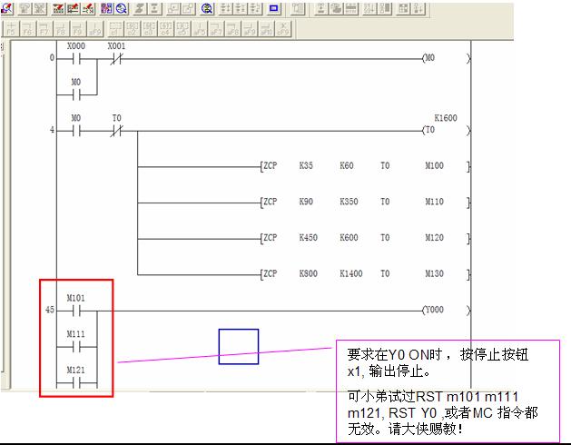 小弟用fx2n plc 學(xué)習(xí) ZCP指令時遇到個問題,就是如何將標(biāo)志位復(fù)位。。請壇里的大俠們多多賜教。。先謝過