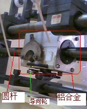 而通過下面的阻擋器《導向輪》就可讓白色的鋁合金在圓桿上來回走動了.