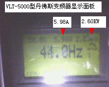 實際水壓壓力只要0.55MPa就可,改成變頻器控制,查看面板的參數發現運行在44HZ時電流顯示為5.98A,功率為2.60KW