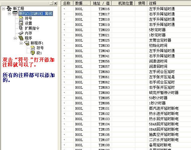從PLC上載的程序,輸入都可以添加注釋,輸出的定時(shí)器加不上,其它可以,用的是CX-Programmer5.0(中文版),CQM1H-CPU21,請(qǐng)各位指教,謝謝!