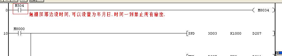 要點在屏上,FX2NPLC里面可以不做程序,屏里可以直接驅動FX2N輸出禁止繼電器.只要時間到屏上可以打出故障提示.