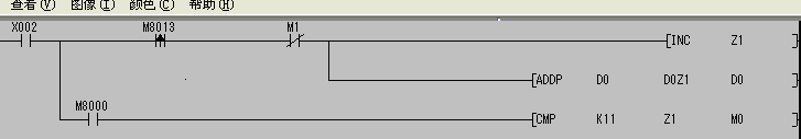 您的梯形圖是否符合您的要求:求D1至D10的數據累加和有點不符,見你的ADDP D0 D0Z1 D0,每次僅是D0分別同D1到D10相加,不對之處請指正    不好意思  謝2樓的提醒   是對的          8013是邊沿檢測觸點  那么ADD能否不帶P