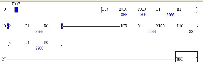 謝謝,不過我還是沒有搞懂,FX1N沒有此功能的話那就更急了,要求就是FX1N,除了這個辦法有沒有其他的途徑把撥碼開關的一組數字存到數字寄存器(D)中,再把D中的內容寫成有兩個小數點的,說白了就是用來控制脈沖達到更高精度。。。