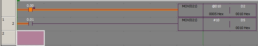 MOV  @D10 D20 中的@D10指D10里的值指定為另一個DM里的值,如D10為#5時,@D10=D5,看圖理解