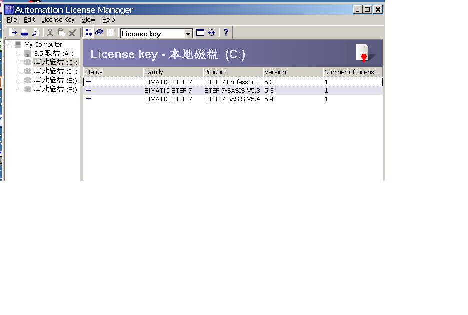 但在安裝過程中首先安裝Automation License Manager軟件,完成后卻無法安裝STEP7_V53_SP3,在Automation License Manager上能檢測到授權號,第一次安裝,沒有經驗,請各位幫忙解決!