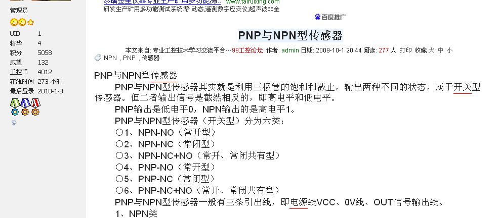 文中所講正好反了。PNP輸出是高電平,NPN輸出是低電平。實際工作中可測量電壓值以防出錯。