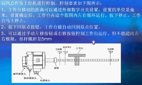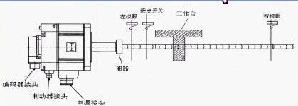 伺服電機(jī)連接絲桿,而絲桿上是切斷材料工作臺,所當(dāng)切斷材料后又返回點(diǎn)等待送料的長度到達(dá)后又繼續(xù)工作。如此往返工作的