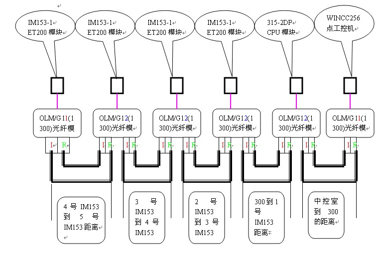 以上采用西門子的ProfiBUS光纖通訊,里面還有些遺漏的東西,以及不確定的型號,那位高手能幫我補充完整?或者提供一下類似案例鏈接。在此先謝謝了。
