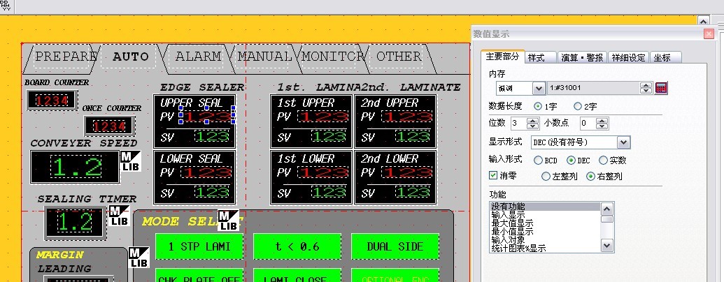 本公司的設備中,用的觸摸屏是富士的UG330 溫控器是富士的PRX4  ,利用PID來控制加熱器的溫度。在觸摸屏中,PV、 SV區域分別用來讀取溫度值、設定溫度值的。利用RS485進行通信。