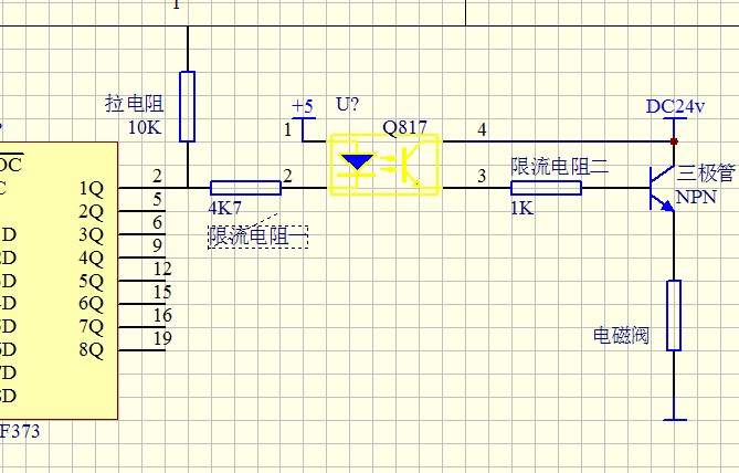 你這個電路,負載(電磁閥)應該接在三極管的集電極。發射極直接接地。這樣工作更穩定。
