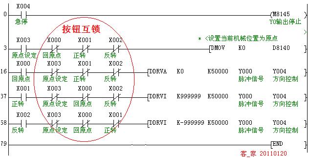 如下圖,不用原點回歸指令[ZRN],而用絕對位置指令[DRVA]也能使Y0回歸到所設(shè)定的原點。編程手冊中好像是沒有類似此用法的介紹哦^_^ ,至于原理,玩過步進(jìn)、伺服馬達(dá)定位控制的你知道的。