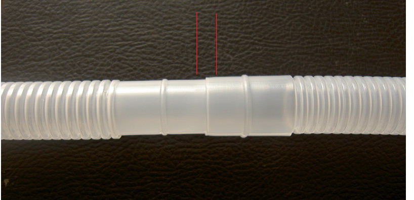 如下圖所示,空調用的排水波紋管,材質PE,軟,壁厚1MM到2MM之間,想要在如圖兩處的紅線位置自動用兩把刀切斷,左右誤差不超過3MM。請教各位,用什么方法或傳感器來確定這個位置呢?盡量簡單、經濟的方法,復雜成本高的方法不考慮。